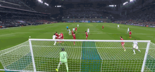 第45+2分钟,又帅又能踢,索博斯洛伊任意球破门,利物浦1-0